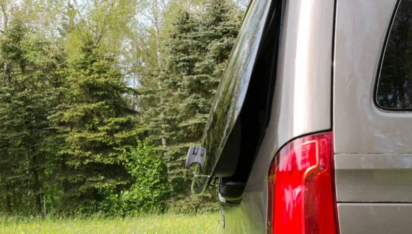 Brandrup AIR-SAFE voor achterklepraam Mercedes V-Klasse en Marco Polo. Ventilatie met raam op een kier, regendicht en veilig.