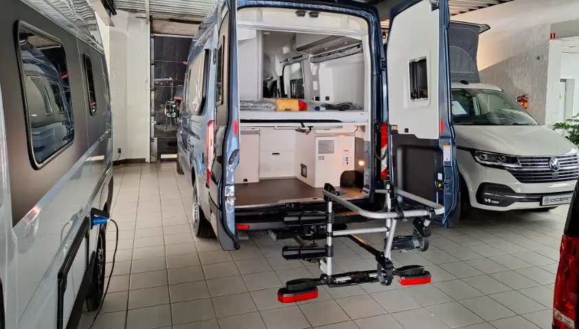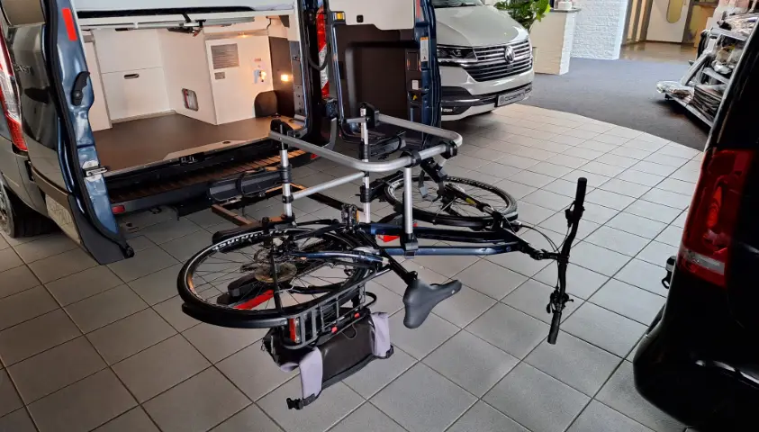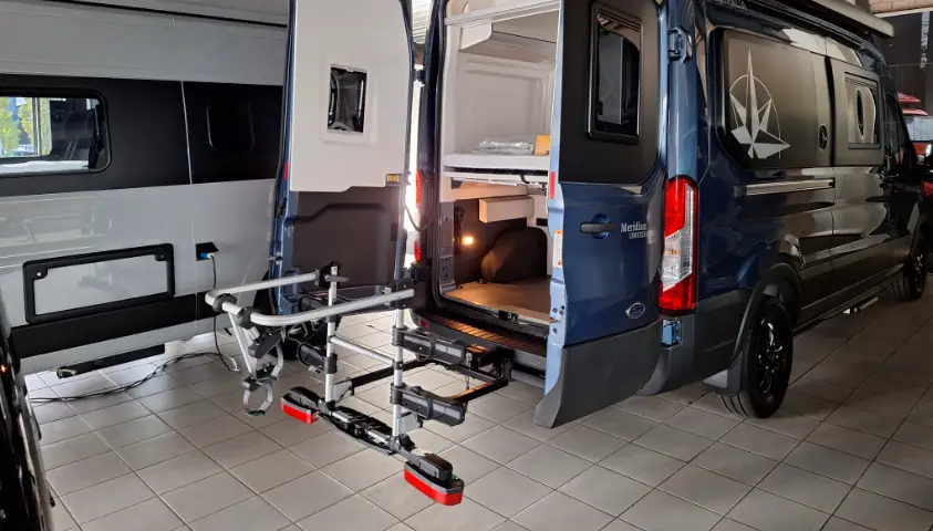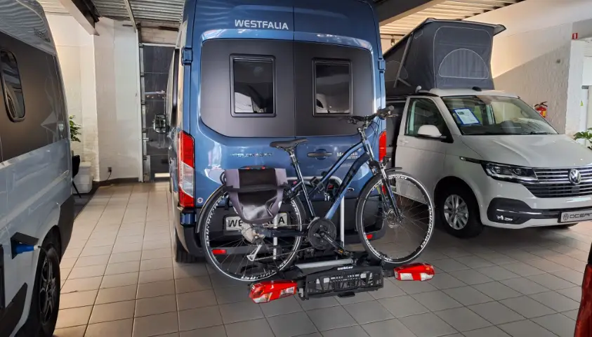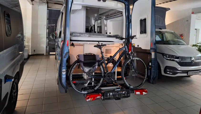 De ideale fietsendrager voor campers met achterdeuren: de Uebler H 21 Z! Deze opvouwbare en kantelbare fietsendrager biedt plaats voor 2 fietsen met een maximaal gewicht van 60 kg. Zelfs met de drager 90° gekanteld blijft de achterruimte van de camper toegankelijk. Bij niet-gebruik klap je de drager eenvoudig op tot een compact formaat. Geschikt voor campers met achterdeuren zoals de Fiat Ducato, Ford Transit, MB Sprinter, VW Crafter en MAN.