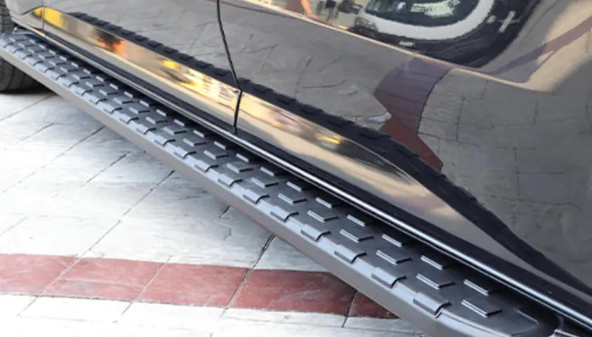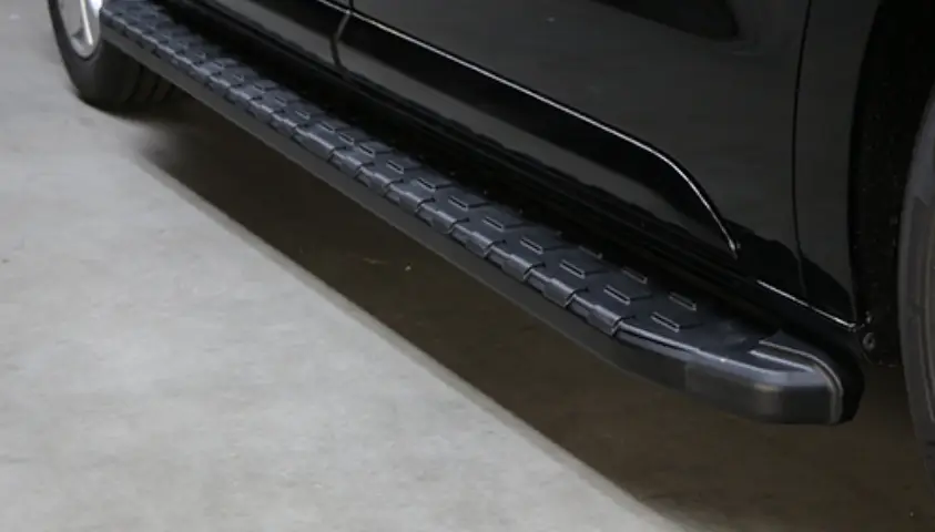 De zwart gecoate aluminium constructie zorgt voor een robuuste uitstraling en beschermt tegelijkertijd de carrosserie van je camper. Dankzij het slimme profiel wordt de dorpel beschermd tegen slijtage en beschadigingen. Kunststof strips of noppen op de treeplank zorgen voor extra grip, zodat je veilig in- en uitstapt, ook bij nat weer.
