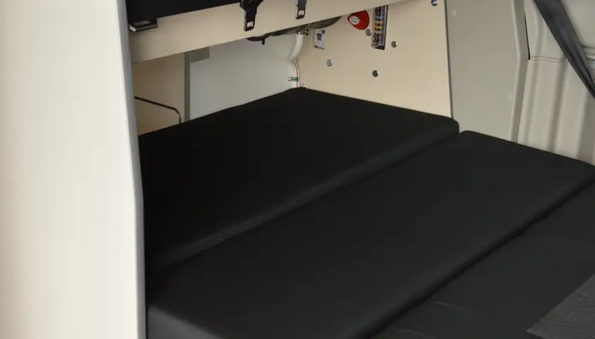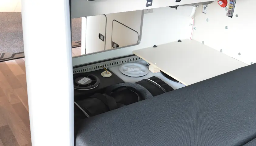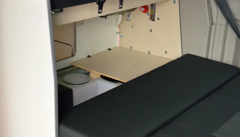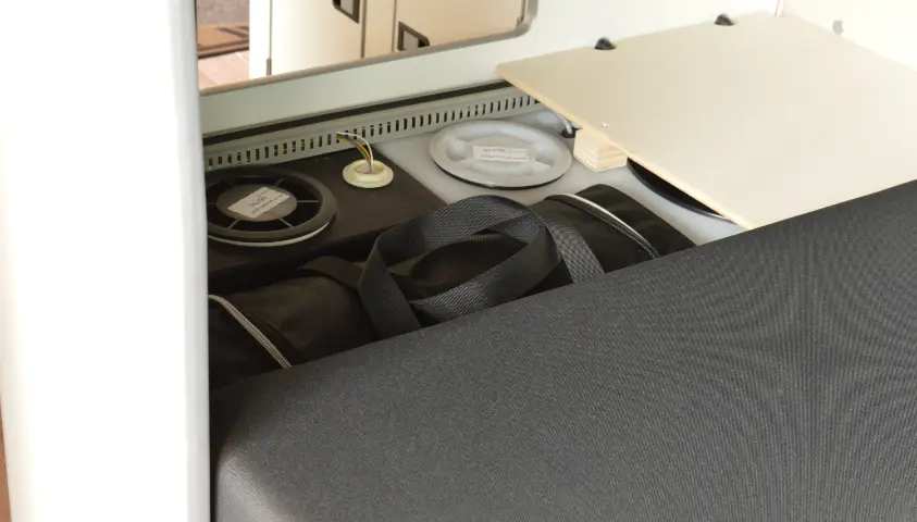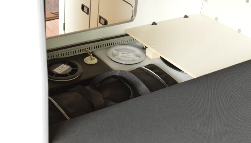 Originele carbags op maat gemaakt voor de Ford Nugget voor gebruik onder de de bank naast de water reservoirs